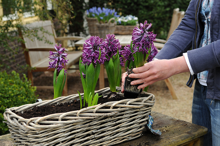 arreglos en maceteros, fuentes, canastos o lo que tengas a mano.